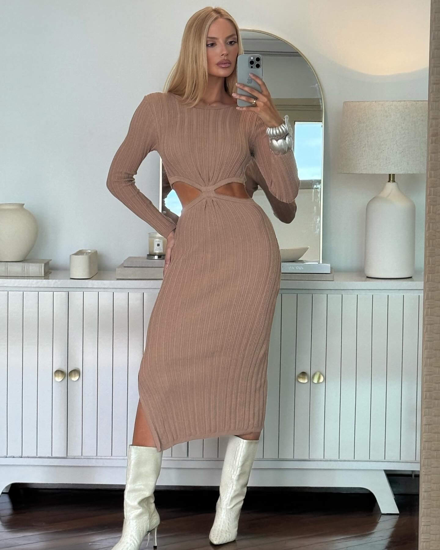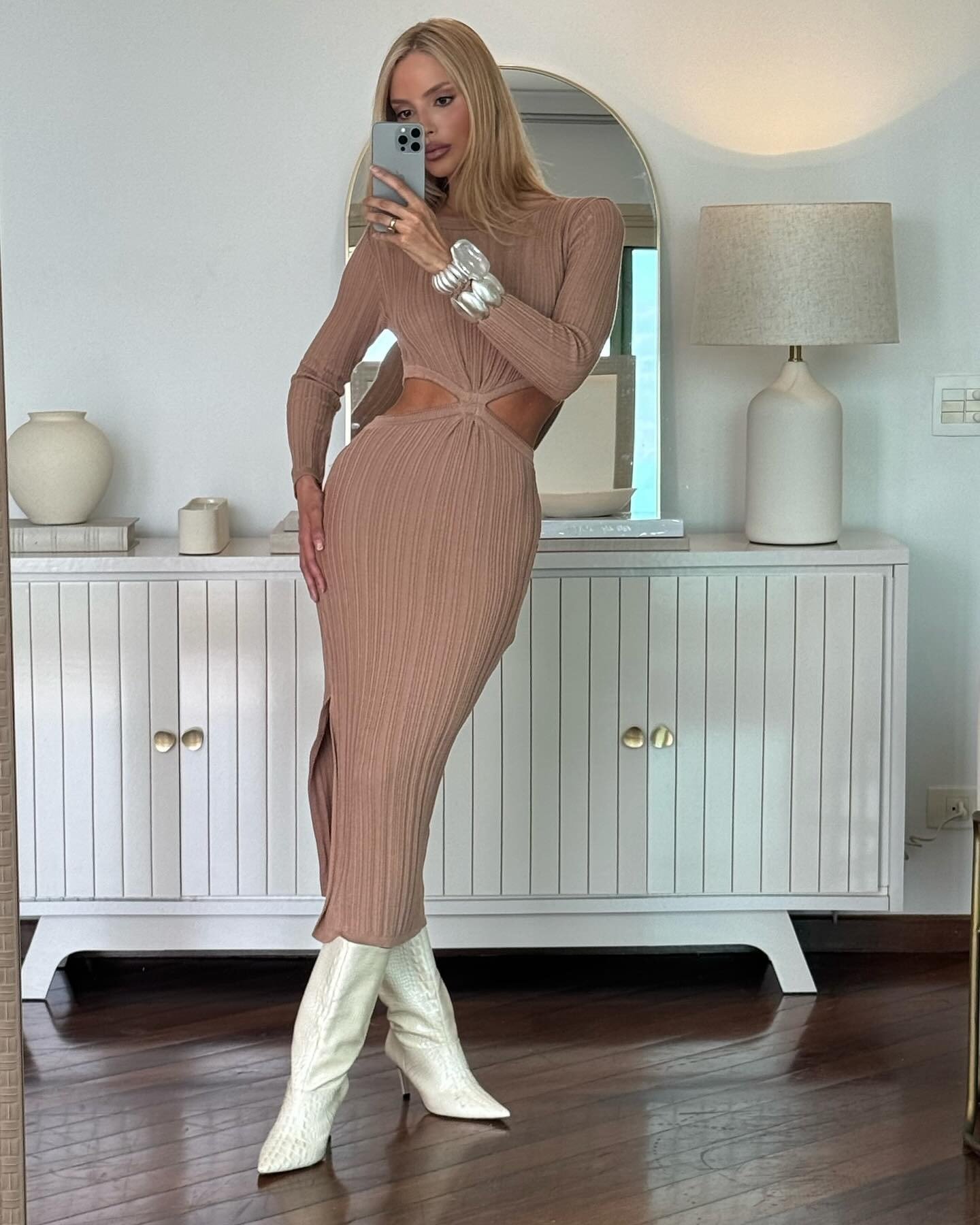 Vestido Modal Mid com Busto Fechado Fenda Lateral – Ana & Júlia – 45128